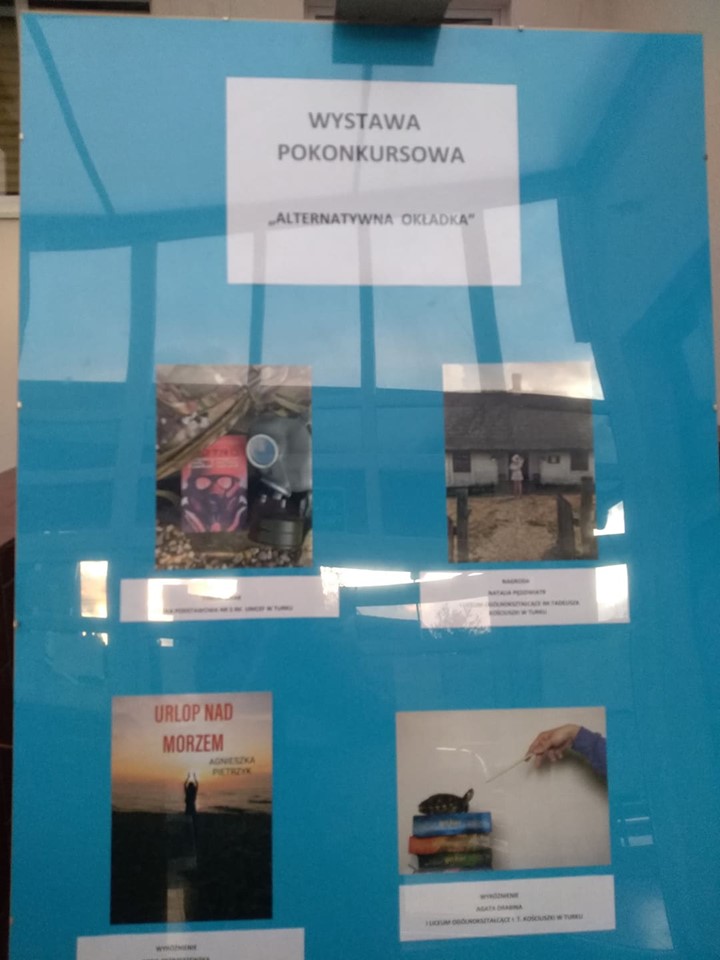 5 października 2019 r. podczas Nocy Bibliotek nastąpiło podsumowanie Konkursu Fotograficznego „Alternatywna okładka”. Jego celem było przedstawienie własnej wizji okładki ulubionej książki. Konkurs był skierowany do uczniów klas siódmych i ósmych szkół podstawowych oraz szkół średnich z Turku i powiatu tureckiego. Z naszej szkoły w konkursie udział wzięły cztery osoby: Partycja Pietrzak (VII a), Anna Ostrzeszewska (VII a), Tymon Smak (VII c) oraz Gabriela Bednarek (VIII b).