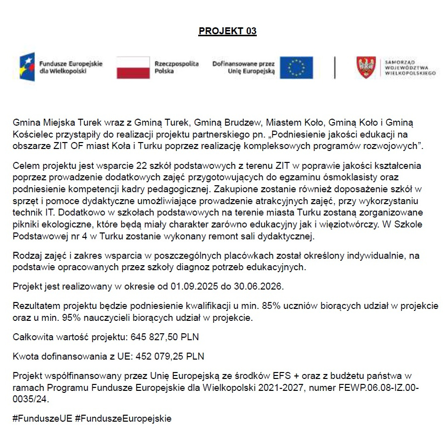 W Szkole Podstawowej nr 5 w Turku realizowany jest program...