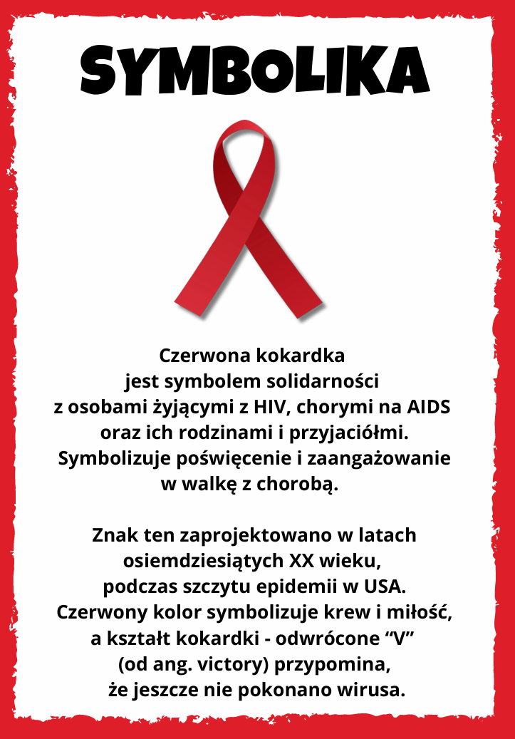 „Czerwona kokardka” to symbol solidarności z osobami żyjącymi z HIV i AIDS, ich rodzinami i przyjaciółmi. Symbolizuje poświęcenie i zaangażowanie w walkę z AIDS. Stanowi pierwszy krok na drodze upowszechnienia problematyki HIV i AIDS.