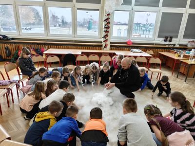 Zajęcia miały formę efektownego pokazu połączonego z aktywnym udziałemuczestników, dzięki czemu nauka stała się świetną zabawą. Uczniowie poznawali ciekawostki o otaczającym nas powietrzu, „spacerowali w chmurach” i badali różne fascynujące zjawiska. Nie zabrakło eksperymentów i zabaw z balonami oraz bańkami mydlanymi.